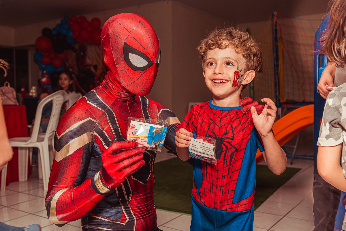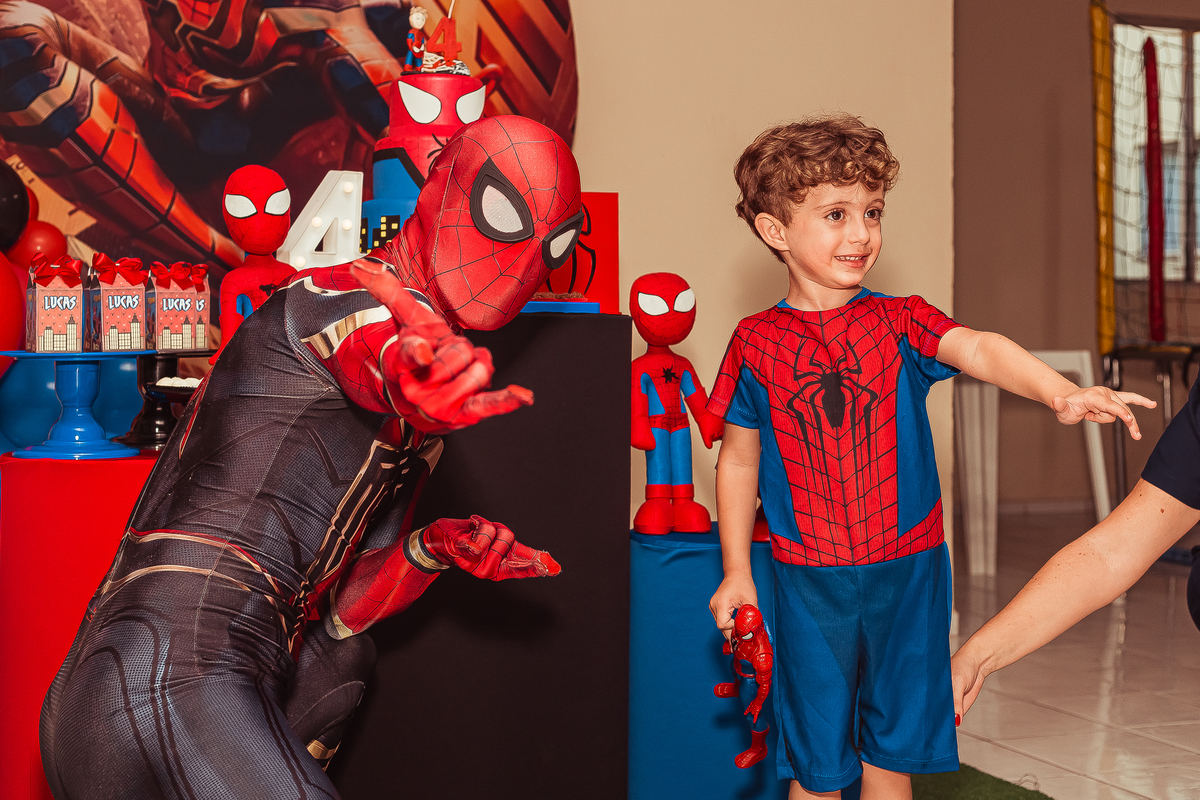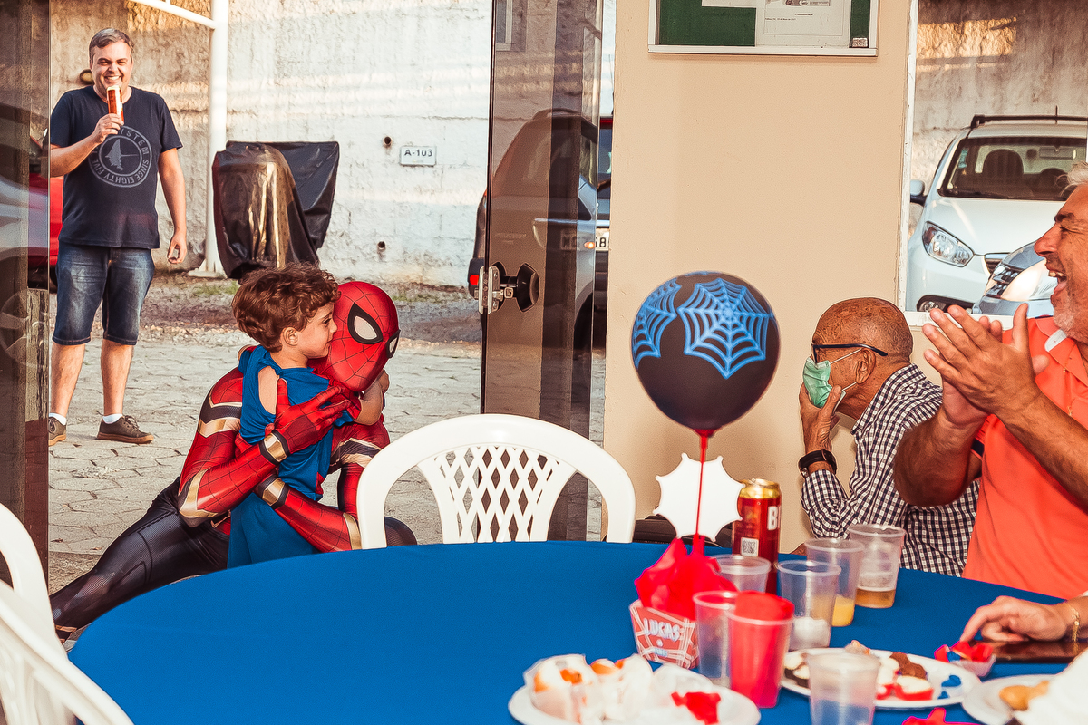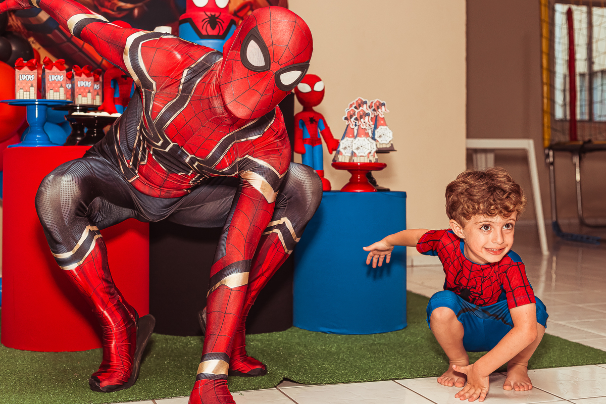 herói fez uma aparição especial, o Lucas ficou muito feliz com a visita do amigo e emocionou todos os convidados!