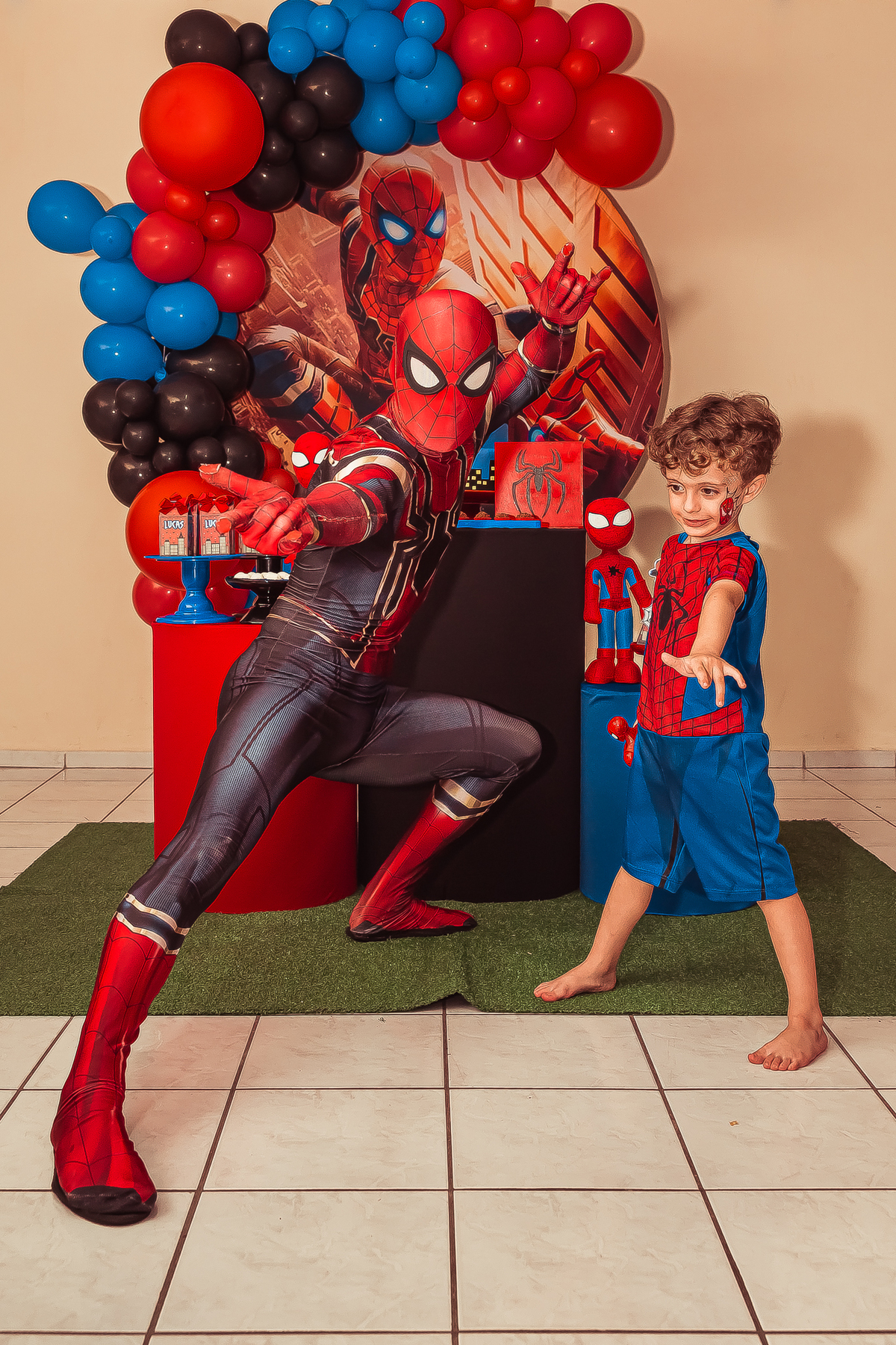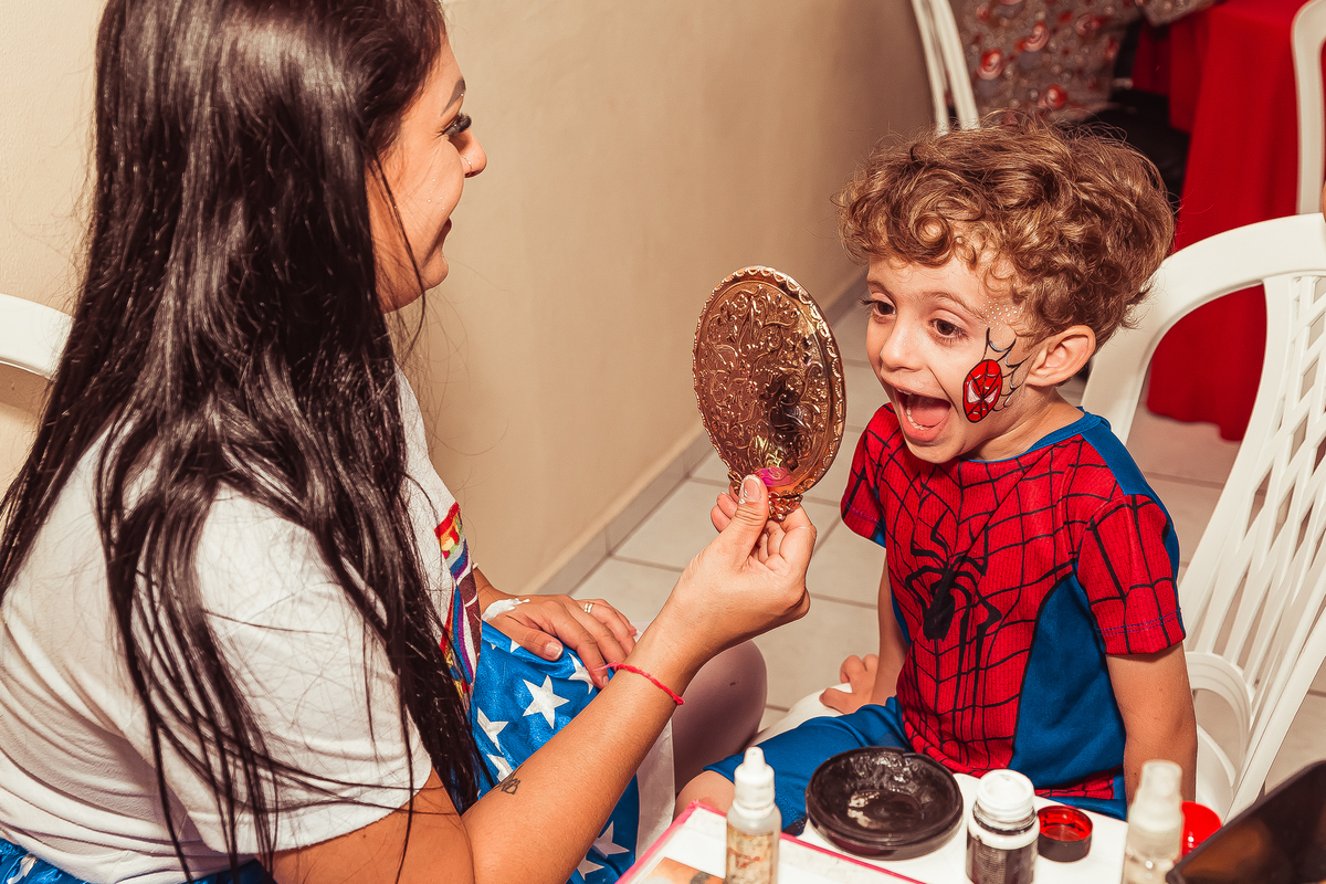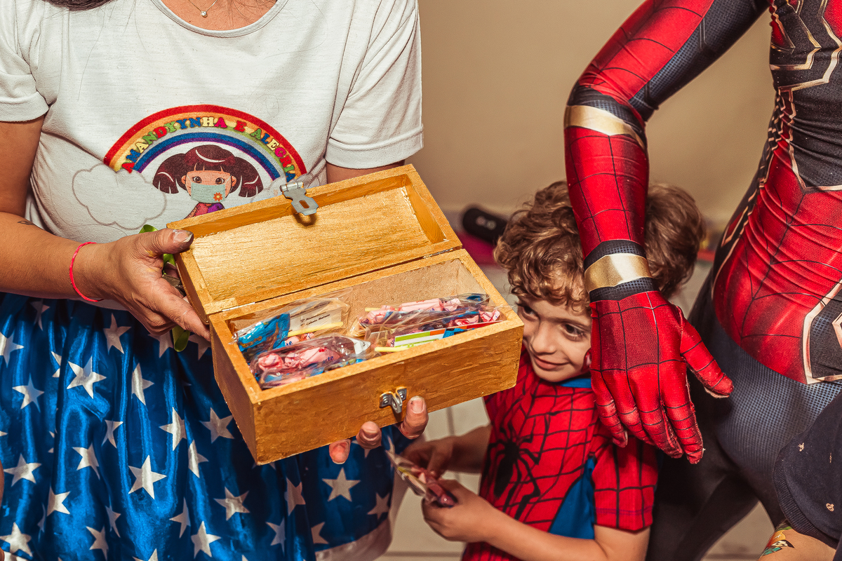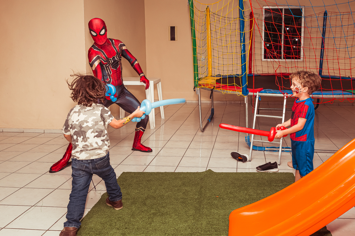 herói fez uma aparição especial, o Lucas ficou muito feliz com a visita do amigo e emocionou todos os convidados!